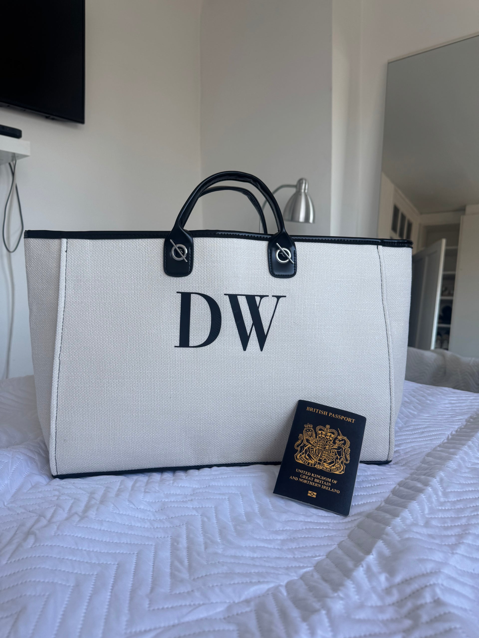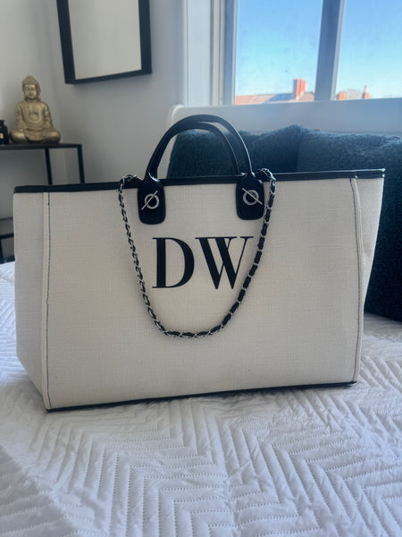 Large Monogram Personalised Canvas Tote Bag | Holiday Travel Bag | Beach Bag