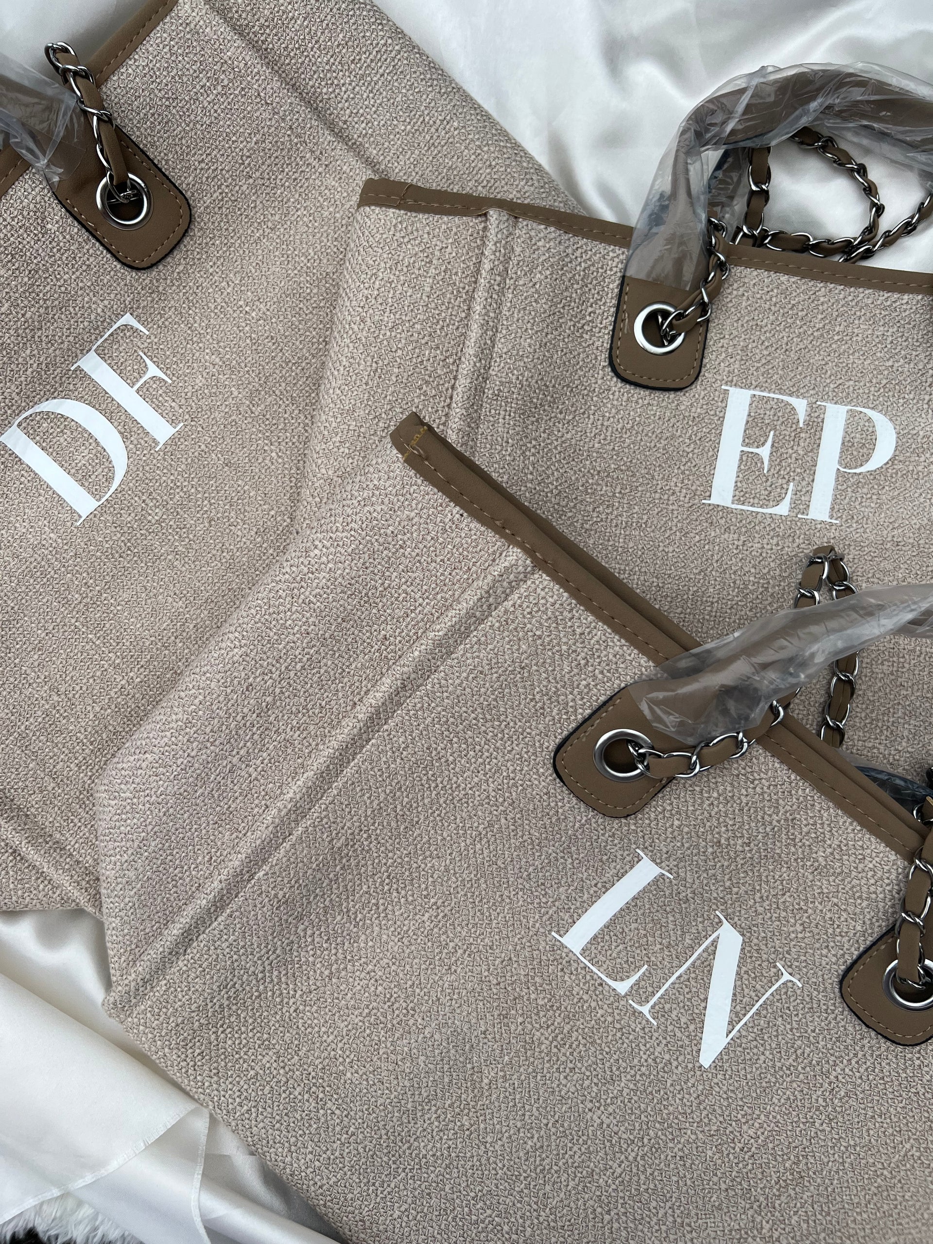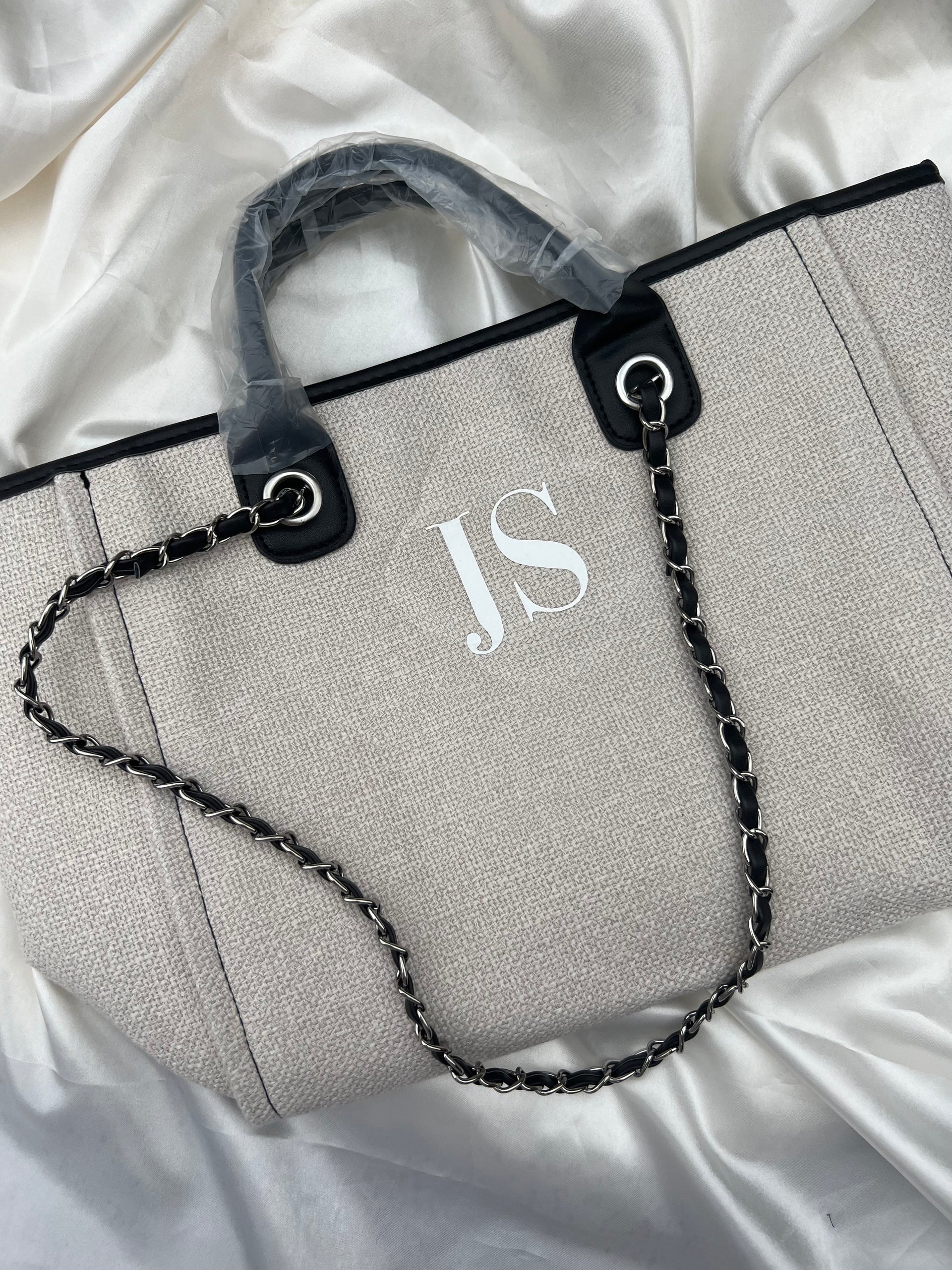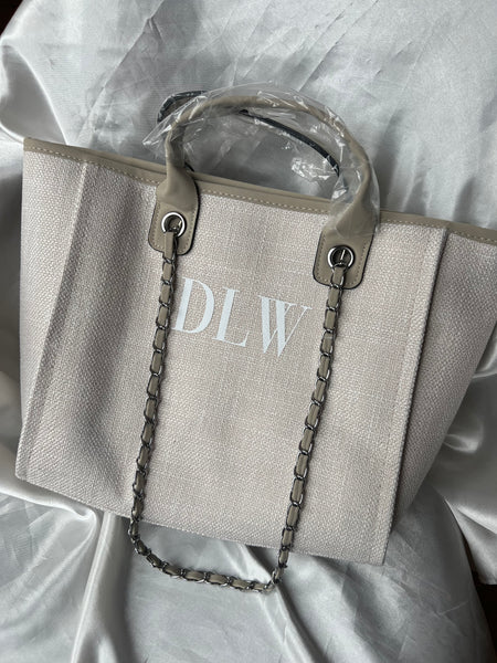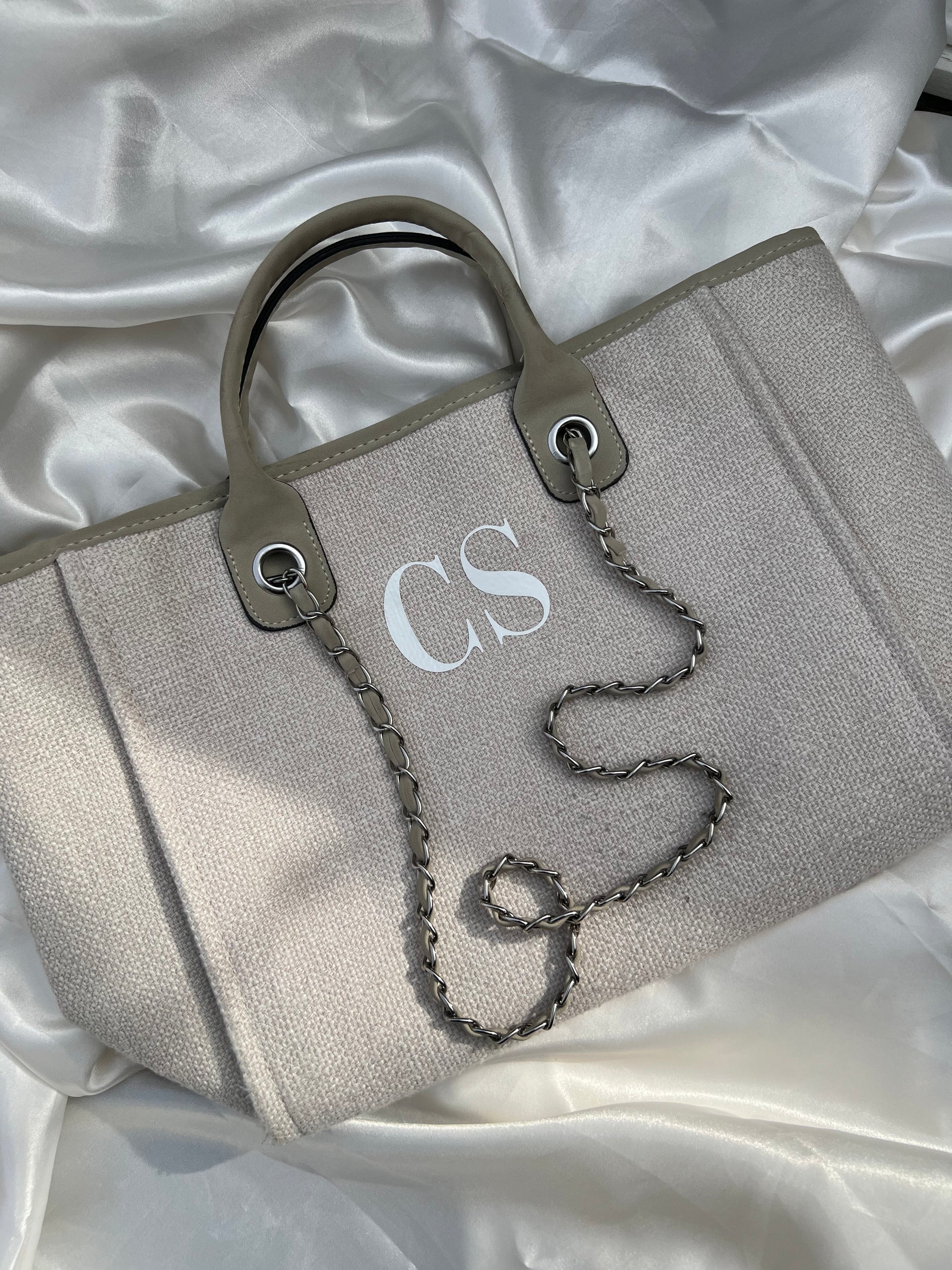 Our Monogram Canvas Tote Bag, available in: Nude/Tan, Grey/Beige, Cream/Black and Black