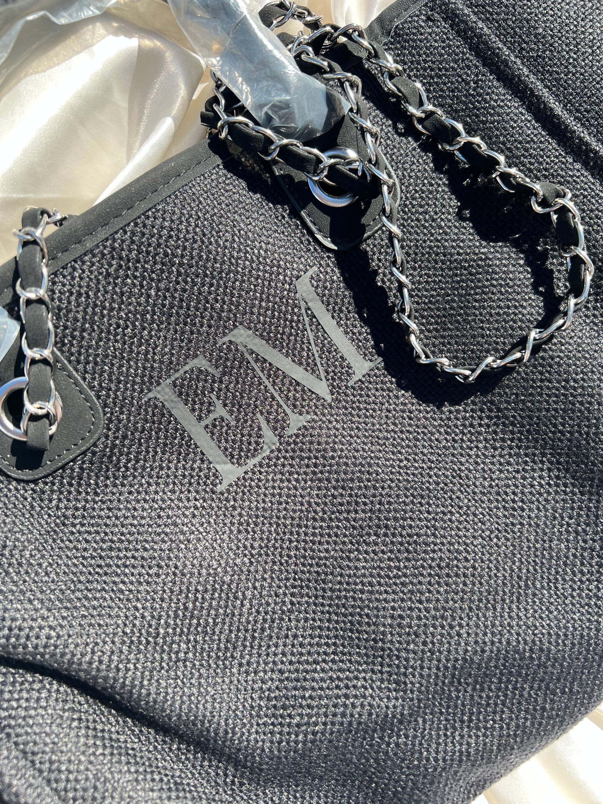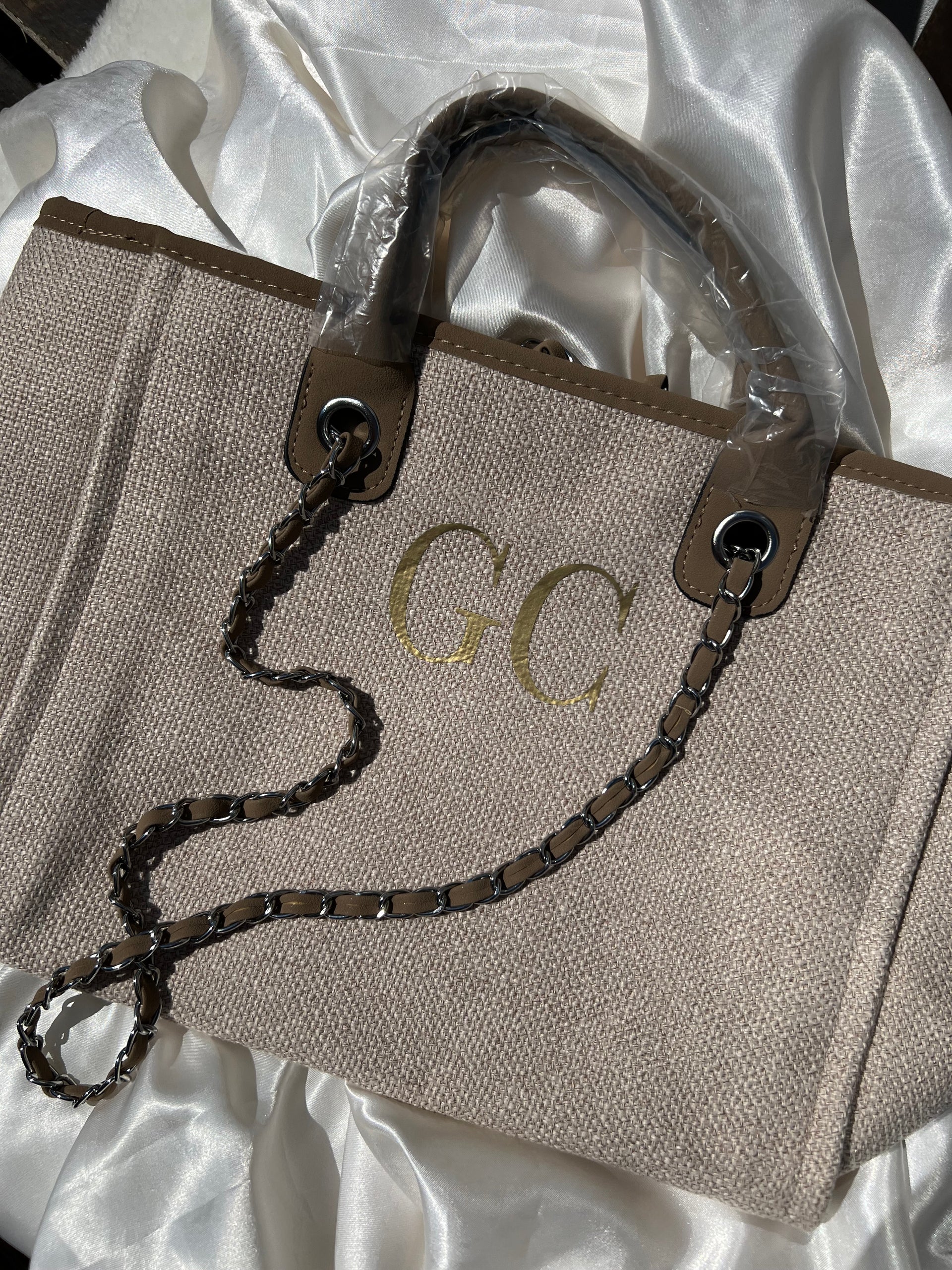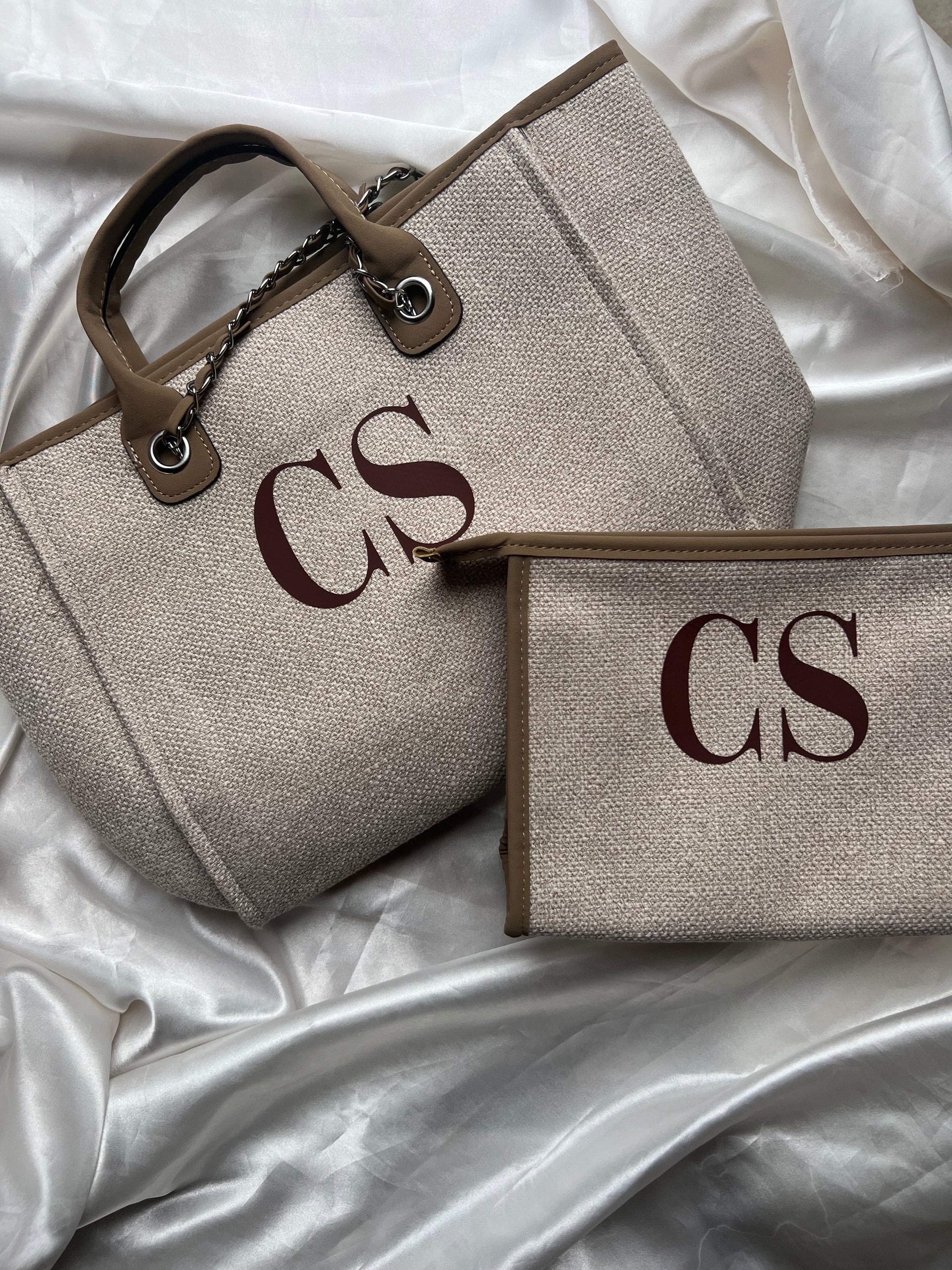 Our Monogram Canvas Tote Bag, available in: Nude/Tan, Grey/Beige, Cream/Black and Black